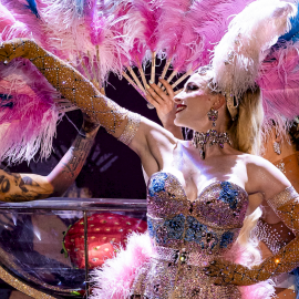 Ztlumená světla, první takty dobové melodie a na pódium vstoupí postava jako ze zlaté éry Hollywoodu – v třpytivém korzetu, s péřovými vějíři a úsměvem, který slibuje, že budete litovat, až tahle chvíle skončí.