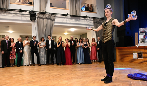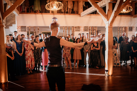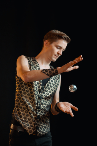 Koule se plynule pohybují po rukou, těle i ve vzduchu a vytvářejí silný vizuální efekt bez jazykové bariéry.