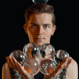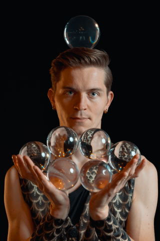 Elegantní a hypnotická vizuální show založená na manipulaci se skleněnými koulemi, iluzích a plynulém pohybu.