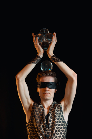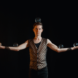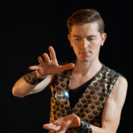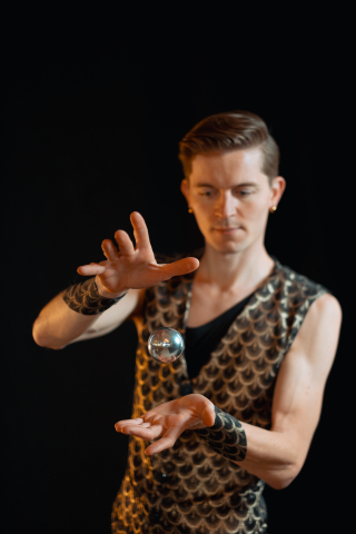 Vystoupení začíná jen s jednou skleněnou koulí, která se jemně vznáší v rukou a plynule obíhá kolem těla. S přesností a jistotou létá vzduchem a dopadá zpět na umělcovo tělo, tím nejnapínavějším hodem, se dostane z nohy na čelo. Postupně koulí přibývá… čtyři - elegantně balancují na rukou, šest - zdánlivě samy vytváří nejrůznější tvary a obrazce, sedm - jedna na hlavě a šest v rukou. Celé vystoupení vrcholí efektem létající koule, která magicky uzavírá celou podívanou. Více než deset let praxe a tisíce vystoupení mohou za to, že je Kris považován za jednoho z nejlepších kontaktních žonglérů na světě.