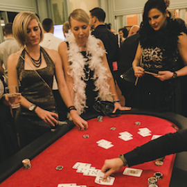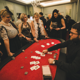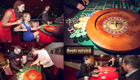 Ruletu, Blackjack nebo Texas Hold‘em poker si můžou vaši hosté zahrát v průběhu večera s profesionálním krupiérem a bankovkami s vaším logem. Žádné atrapy stolů, pouze kvalitní table topy, žetony, mahagonové ruletové kolo, to vše vás vtáhne do úžasné atmosféry našeho mobilního casina.