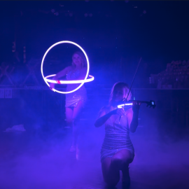 Tančící houslistka Kasperlin a flow artistka Anya spojily své umění v jedinečném projektu. Společně tvoříme první projekt svého druhu v ČR, který kombinuje živou houslovou hru, flow art, tanec a světelné rekvizity (LED housle, obruče a další světelné rekvizity).