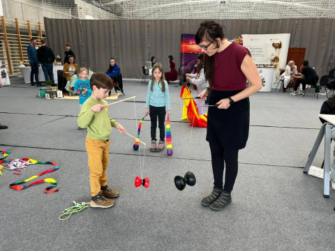 Jsme hravý projekt zaměřený na interaktivní workshopy pro děti. Učíme rytmus pomocí etno nástrojů, rozvíjíme rovnováhu na slacklině a balance boardu a zapojujeme tělo i fantazii skrze žonglování a pohybové hry.