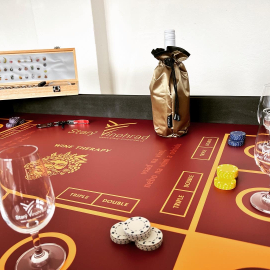 Hrací plocha je stůl se sklenicemi s vínem, žetony a políčky pro sázky. Každý hráč má hrací kartu, do které mu someliér značí výhry. Políčka pro sázky jsou označena jako “DOUBLE” a “TRIPLE”.