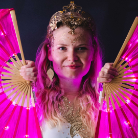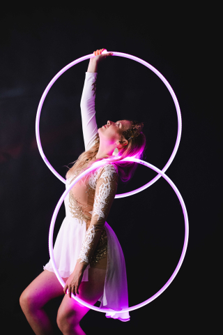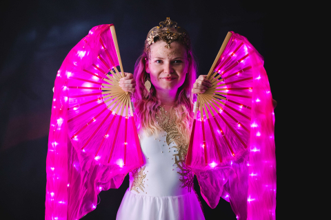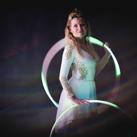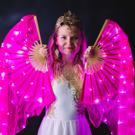 Těšit se můžete hned na několik světelných rekvizit - LED vějíře, LED motýlí křídla a světelné obruče, které tvoří při točení vizuální efekty.