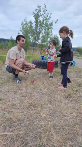 Jsme hravý projekt zaměřený na interaktivní workshopy pro děti. Učíme rytmus pomocí etno nástrojů, rozvíjíme rovnováhu na slacklině a balance boardu a zapojujeme tělo i fantazii skrze žonglování a pohybové hry.